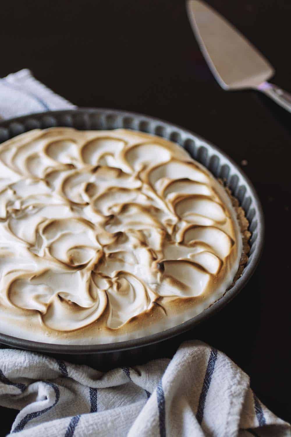 The meringue is best fresh. If you want to make this ahead of time, I would suggest baking the pie the night before and then whipping the meringue fresh and broiling it right before you’d like to serve it!