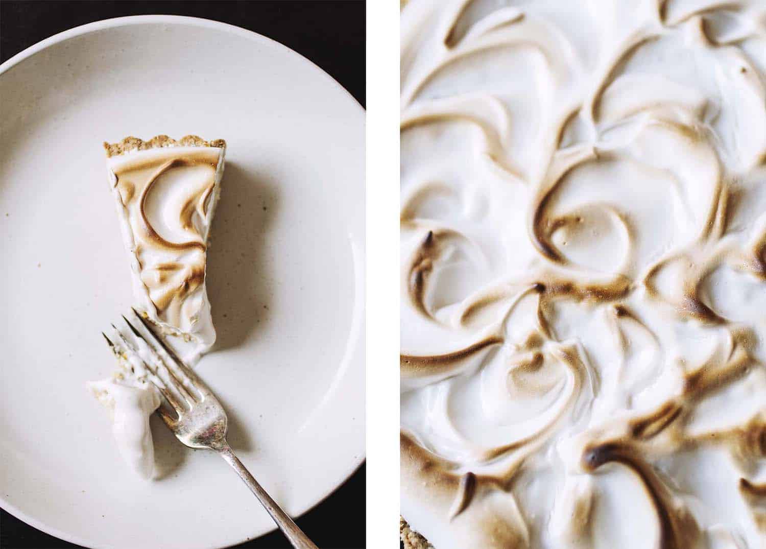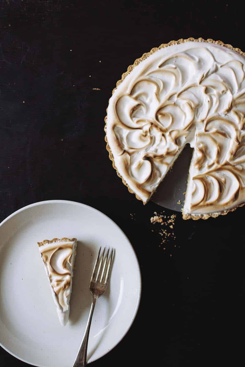 This vegan lemon meringue pie uses a creamy tofu filling and a fluffy aquafaba meringue!