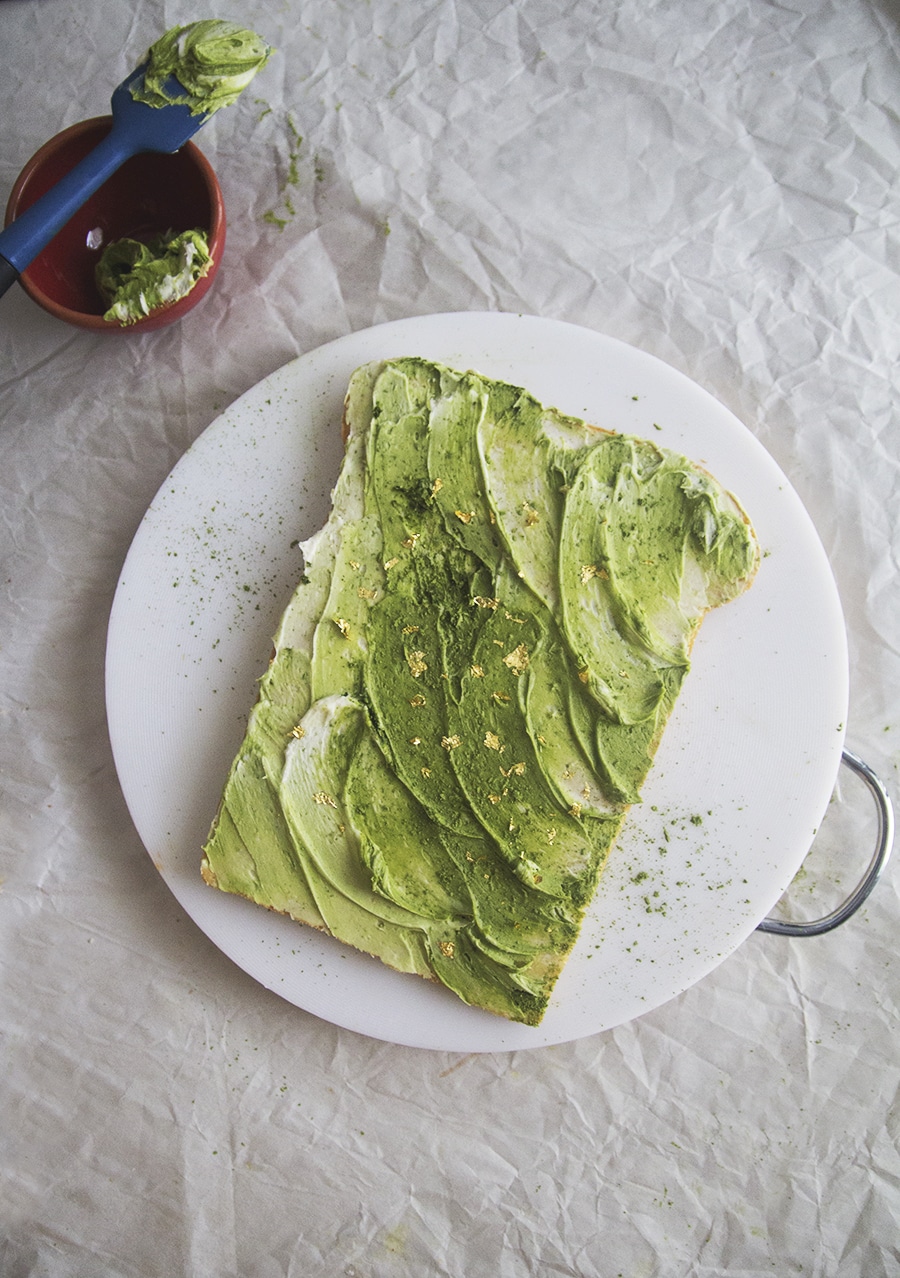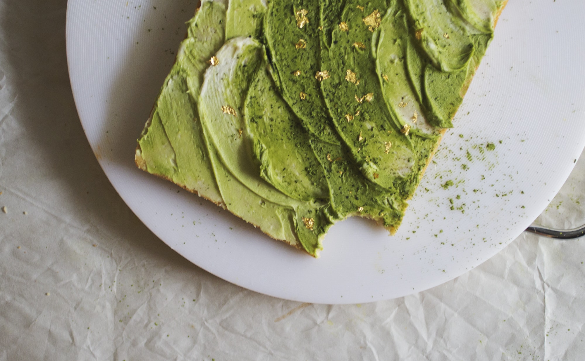 - I added gold flakes because of the original mermaid cake intention. I think flavor-wise, this cake could totally benefit from some milk crumbs sprinkled on top, or maybe sprinkles. You decorate your avocado toast however you feel.