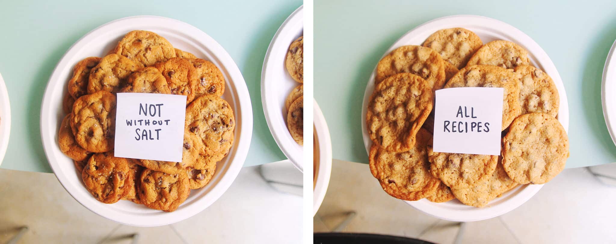 - Audience matters: Interestingly, during the ranking process, we encountered an unexpected phenomenon: drastically different ratings between groups of tasters. We held the original cookie tasting (sampled in a blind tasting) with 15 attendees, and then I sent a bunch of cookies back to college with my brother so that he could hold another tasting to gather more data points. When we got those results back, the data completely changed: some of my favorite cookies had been drastically demoted and some of the cookies reviled by the original tasters were favored by the college students.The cookies we considered “fancy” and took the most work to make (browning butter, chilling, etc. ) that had scored well in the first group trended towards the bottom with the college students. Overall trends showed that they hated “salty” cookies and loved the more classic cookies. Our conclusion here? Your audience matters when it comes to baking. Not everyone will appreciate the artisanal salt-sprinkled cookies (and some are very sensitive to salt, period)–sometimes, a simple classic will be the crowd-pleaser.