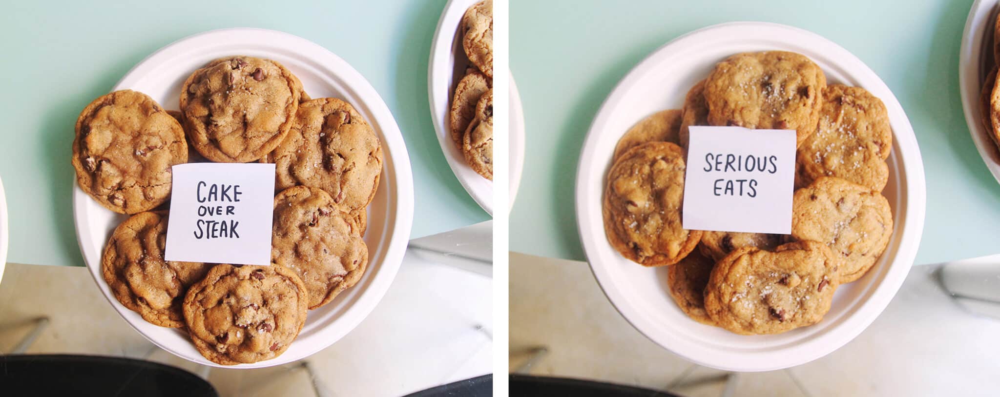 My ideal chocolate chip cookie is a thick cookie with a caramelized, crunchy edge, chewy interior and gooey center. Funnily enough, my favorite cookie out of this bunch turned out to be one of the flattest–read on for my take on each of the cookies.