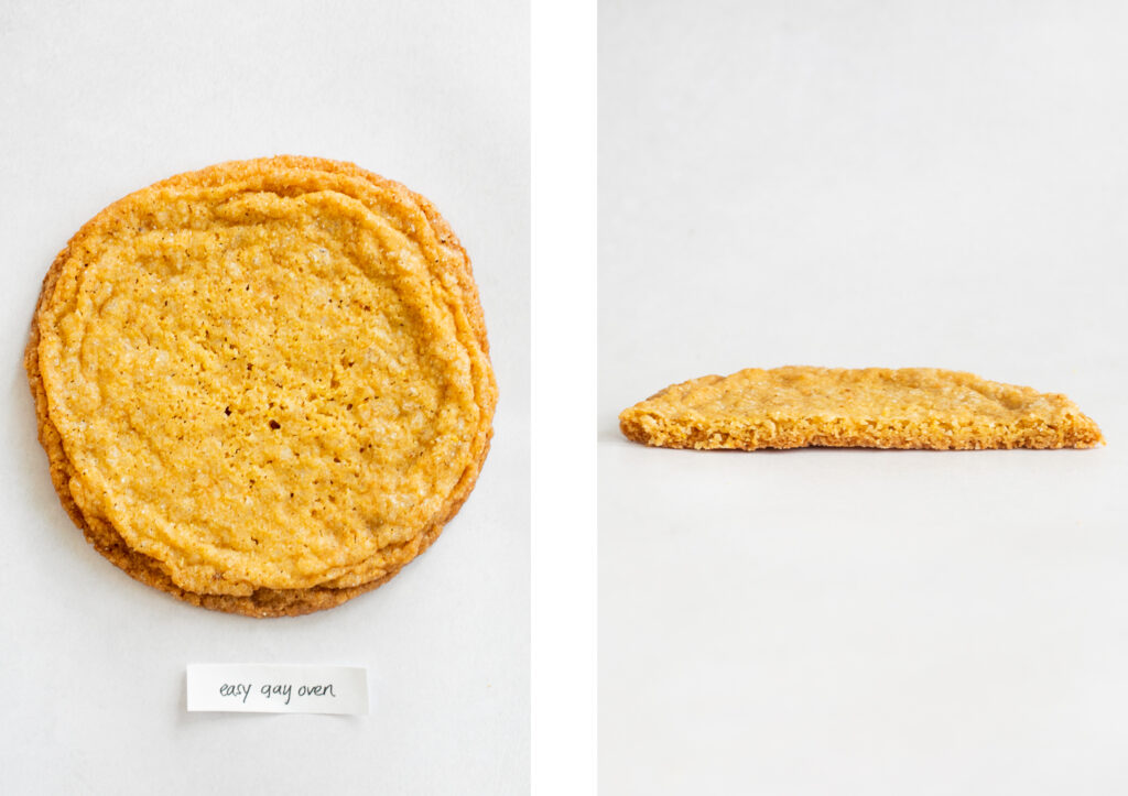 Easy Gay Oven: a thin and chewy, crisp-edged, brown buttery cookie with cornmeal
