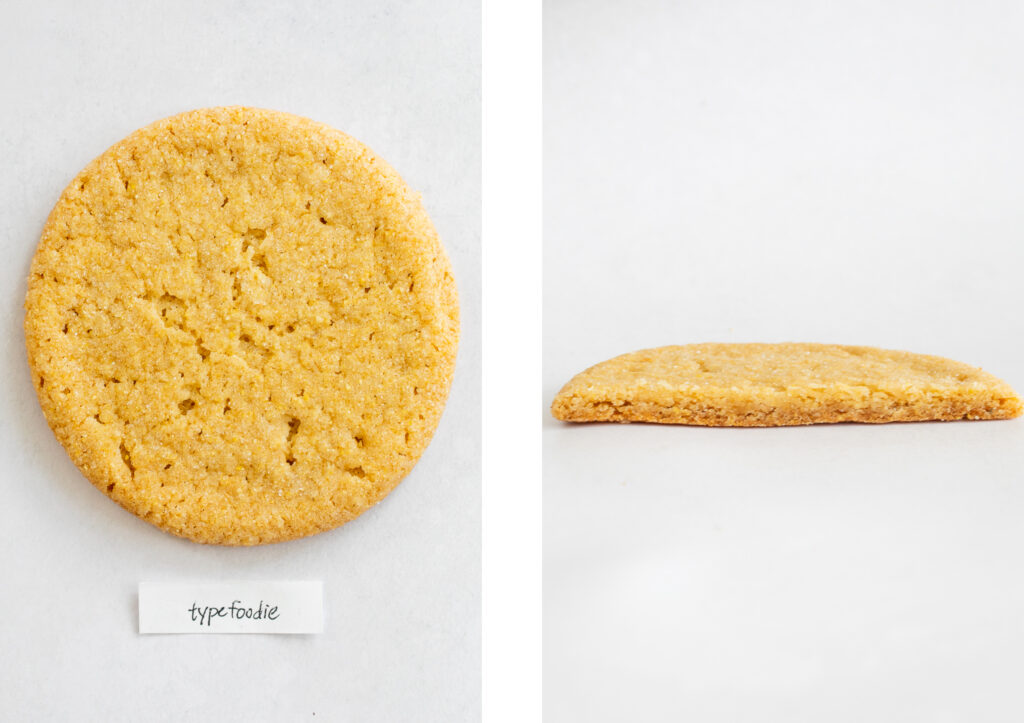 Both of these explanations explain why Alexis’ cookie is so crinkly on top and why both cookies have a relatively cakey texture. Personally, I’m not aiming for a cakey texture in my corn cookies, but this is a good ingredient to consider if you desire cakiness or a crinkly top!