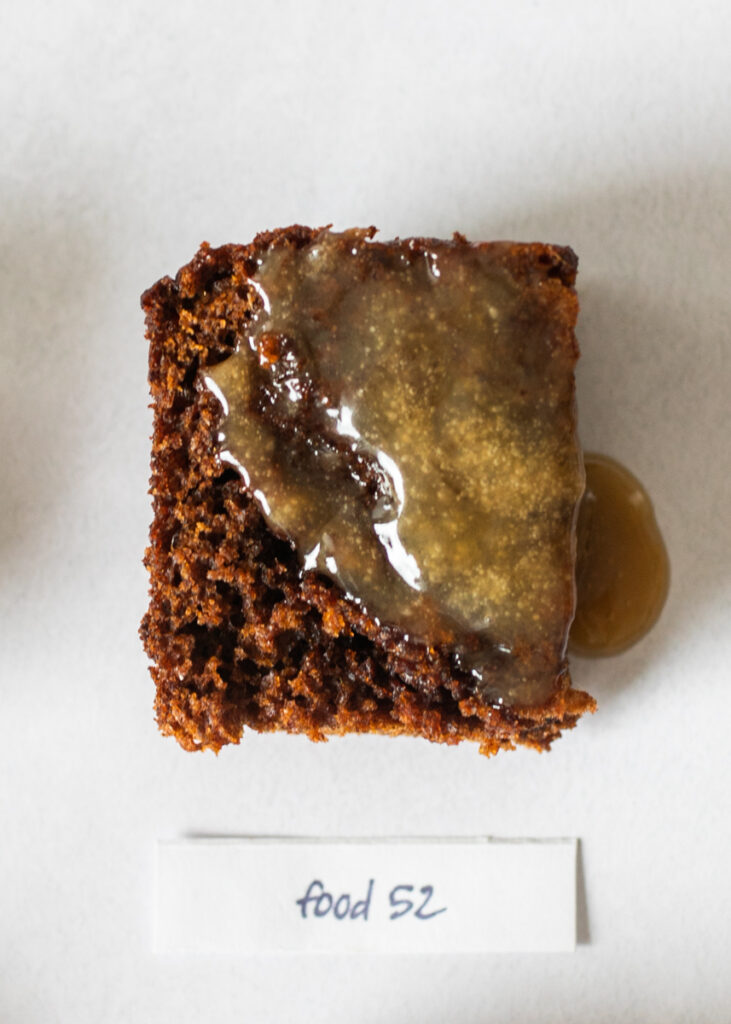 Sure enough, this cake had a significantly softer and squishier texture than other cakes. I think was both due to the lack of egg and the low and slow bake time, which can help a cake retain moisture rather than drying out at high temperatures. In this case, the cake was incredibly moist and squishy on its own, and I could actually see it making a great snacking cake. But once it was doused in the toffee sauce, people found the texture a bit too mushy. I do agree that the texture was structurally a bit too soft, but if you reframe the dessert as a kind of dense sticky toffee soufflé, I think you’d be very happy with it. Personally, I could coming back to this one for more bites.