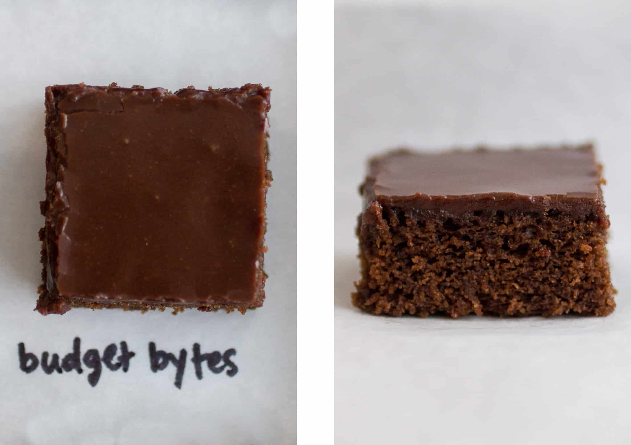 Budget Bytes: a fluffy, coffee-spiked dark chocolate cake with a thin, sweet layer of ganache-like icing