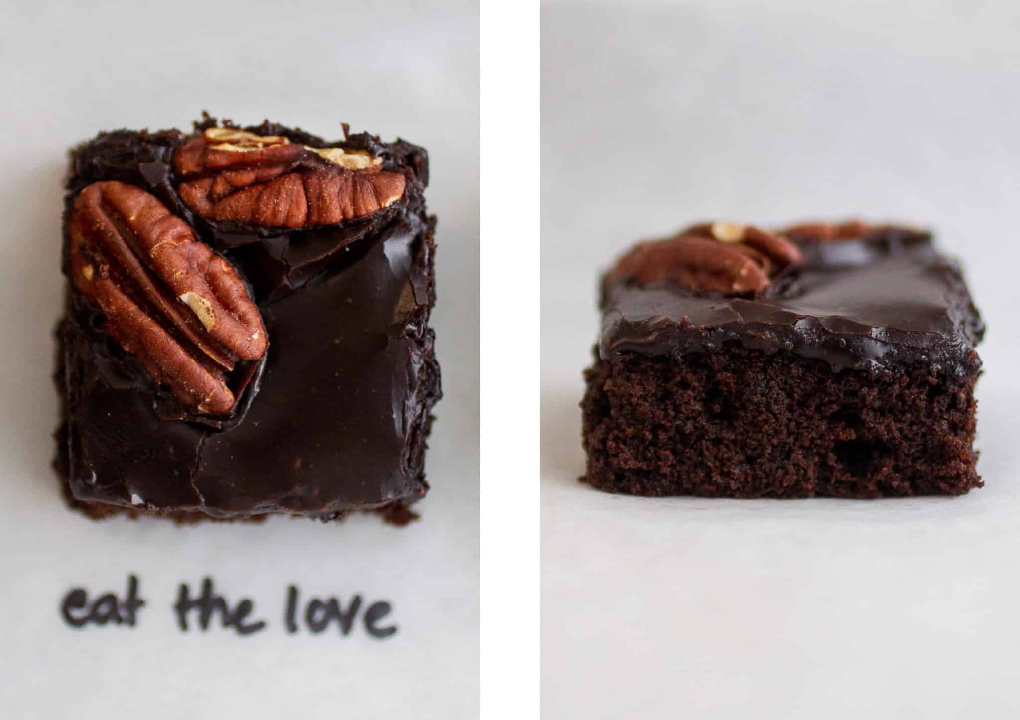 - I loved the cake itself — the texture and flavor of chocolate was on point and not too sweet. Having the pecans folded into the frosting also added another depth of flavor which I really enjoyed.