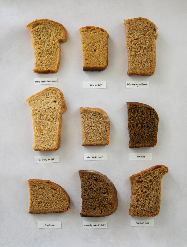 For the purposes of this bake off (and especially in my quest to find a Garden Deli Cafe bread dupe), I thought it would be interesting to include a few brown bread recipes alongside more classic whole wheat bread recipes. Ultimately, I ended up including two brown bread recipes (Amanda Cooks & Styles and Jennuine) alongside Food.com which doesn’t include molasses, but does call itself “squaw bread.”