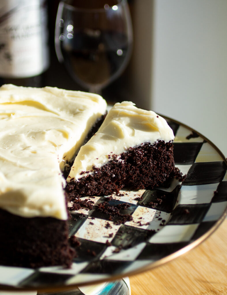 If you’re wondering if this cake will also work with white wine, the answer is yes! I tried this cake with a leftover bottle of sauvignon blanc and the cake was just as chocolatey and moist. I slightly preferred the richer, earthier flavor with red wine, but the white wine lent some pleasantly light and fruity notes to the cake. Use whichever you have on hand!