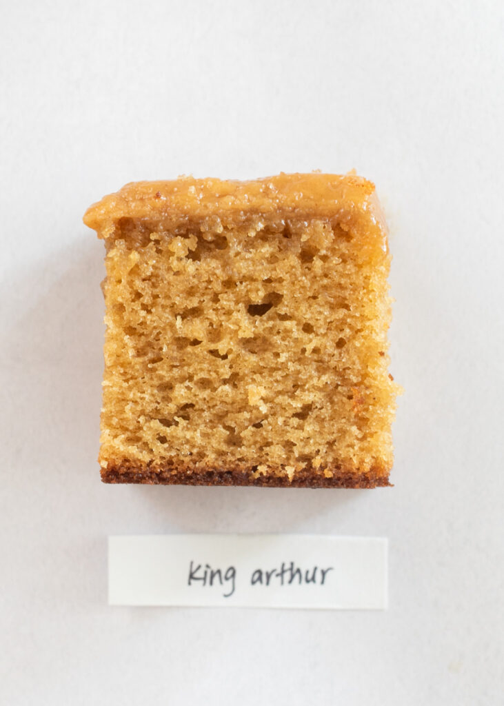 I debated at great length whether to include this cake or Nicola Lamb’s peanut butter cake in the testing. Both have unusually high ratios of egg (16% for King Arthur and a whopping 24% for Nicola Lamb), but King Arthur’s is a more standard butter cake while Nicola’s is an adapted Victorian sponge. Ultimately, I decided to go with the King Arthur since Nicola’s recipe is paywalled and felt like a different genre of cake. Though King Arthur’s recipe is paired with their 7-minute frosting, they offered different frosting options, so I sought out a peanut butter frosting recipe to be consistent with the other cakes.
