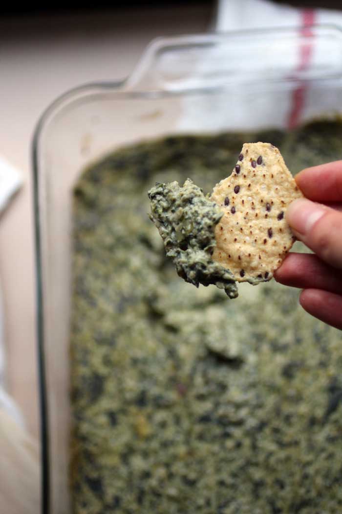 My aunt introduced me to this vegan version of spinach and artichoke dip one Thanksgiving. I’ve never been a big fan of creamy white dips with a lot of mayonnaise, cream cheese or sour cream, so I was thrilled to find a dip without any of these ingredients!